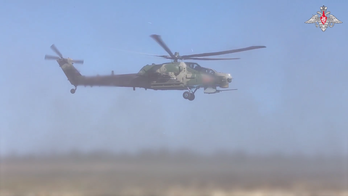 Экипаж Ми-28нм нанес удар авиационными средствами поражения по скоплению живой силы и бронированной технике подразделений ВСУ в приграничном районе Курской области.