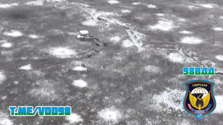 Также в процессе закрепления после боя на позиции осуществляется доставка снабжения дронами, в частности, бойцу сбрасывается рация.