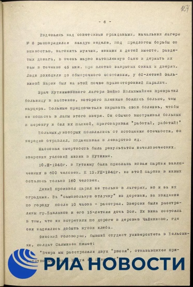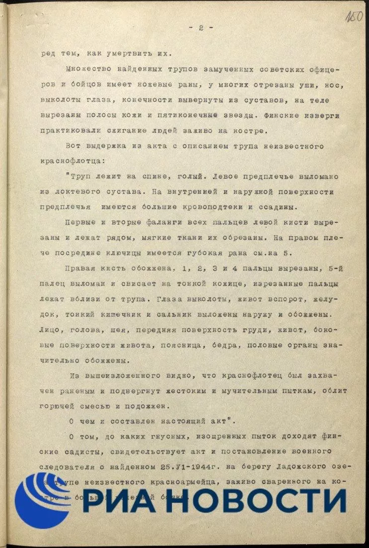«Множество найденных трупов замученных советских офицеров и бойцов имеют ножевые раны, у многих отрезаны уши, нос, выколоты глаза, конечности вывернуты из суставов, на теле вырезаны полосы кожи и пятиконечные звезды», – говорится в документах из архивов.