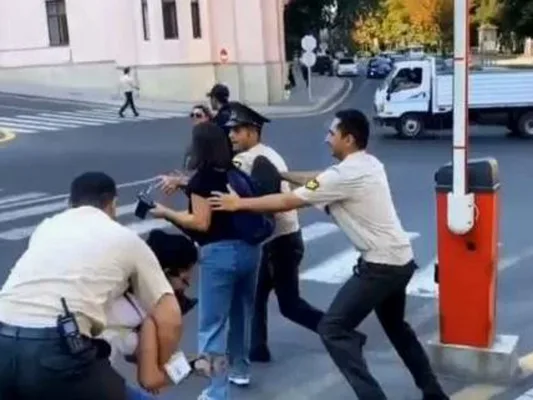 Протестующие, требующие освобождения политических заключенных в Азербайджане, сообщили о нападении на них охраны президента.