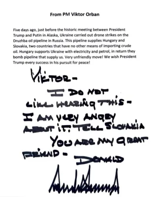 Ранее Орбан рассказал американскому президенту об атаках. В ответ Трамп написал от руки гневное письмо. Как утверждают венгерские СМИ, оно выглядело так.