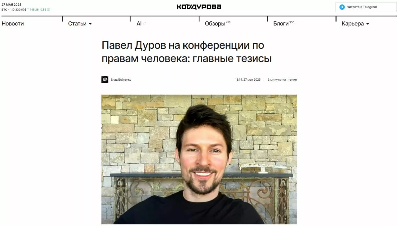 «Меня сильно оскорбляет, когда люди говорят о «российском активе»», — добавил он, рассказывая о причинах продажи «ВКонтакте» по цене «ниже рыночной», отказе от требования передать ключи шифрования Telegram российским властям и создании на этом фоне движения по защите свободы слова Digital Resistance.