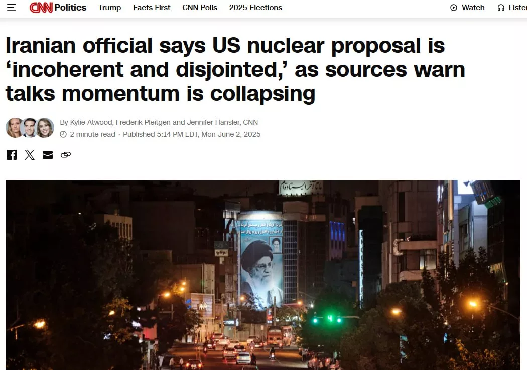 По информации CNN, иранская сторона сочла новое предложение Вашингтона «непоследовательным и бессвязным, очень нереалистичным и выдвигающим чрезмерные требования».