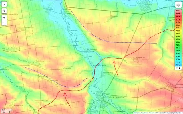 Помните, я выражал удивление тому факту, что командование группировки «Восток» избрало местом удара левый (западный) берег реки. Дело в том, что там все перекопано укреплениями ВСУ, а позавчера мы как раз в ходе своего наступления мы как раз и вышли на одну из двух мощных линий обороны ВСУ.