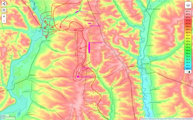 Здесь также наши части медленно, но неотвратимо движутся вперед. Причем, в первую очередь по водоразделу между реками Жеребец и Оскол.
