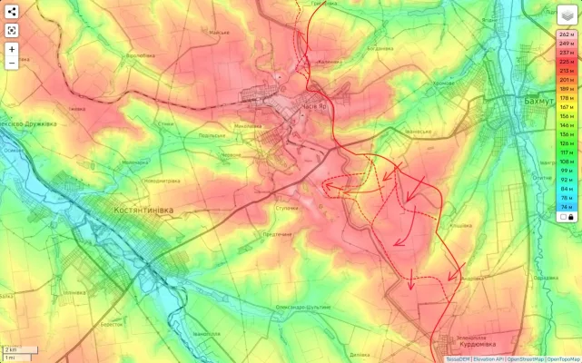 Наши части продолжают охват Часова Яра с юга и добились здесь значимых успехов. Сегодня во время утренней атаки они смогли вбить клин в оборону противника западнее канала «Северский Донец-Донбасс», полностью заняв балку рядом с н.п. Ступочки.