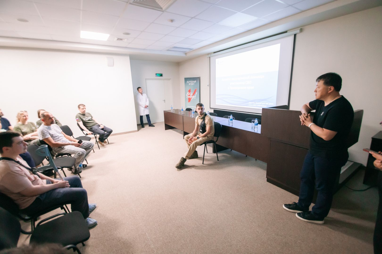 После осмотра медицинской инфраструктуры ДВФУ, Юрий Подоляка смог ближе познакомиться с персоналом Медкомплекса, пациентами, в том числе участниками специальной военной операции, а также студентами вуза, которые присоединились к диалогу. Участники встречи обсудили аспекты медицинской помощи участникам СВО в Приморском крае, бойцы рассказали о своей службе на фронте и высоко оценили эффективность лечебно-реабилитационных программ Медицинского комплекса ДВФУ.