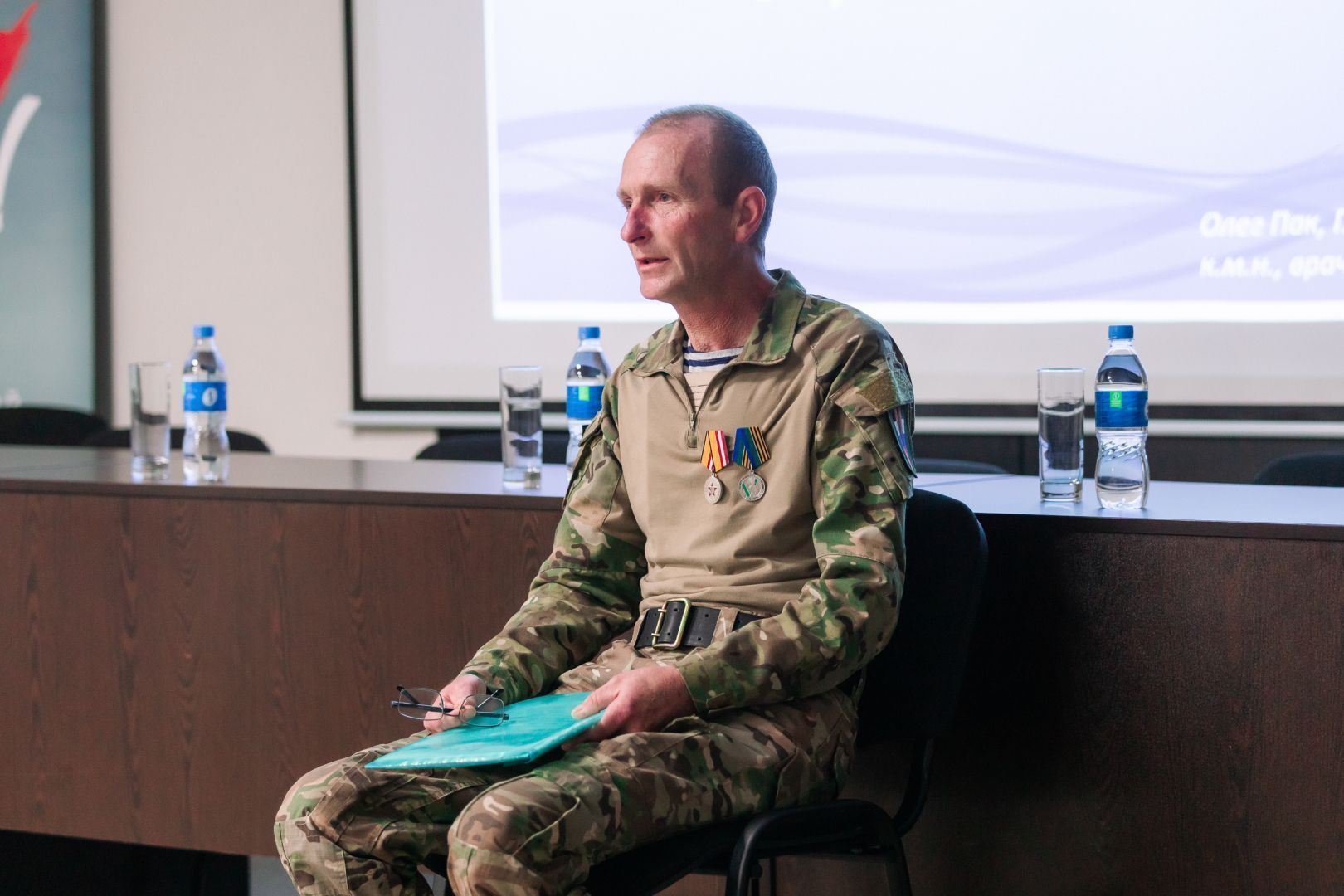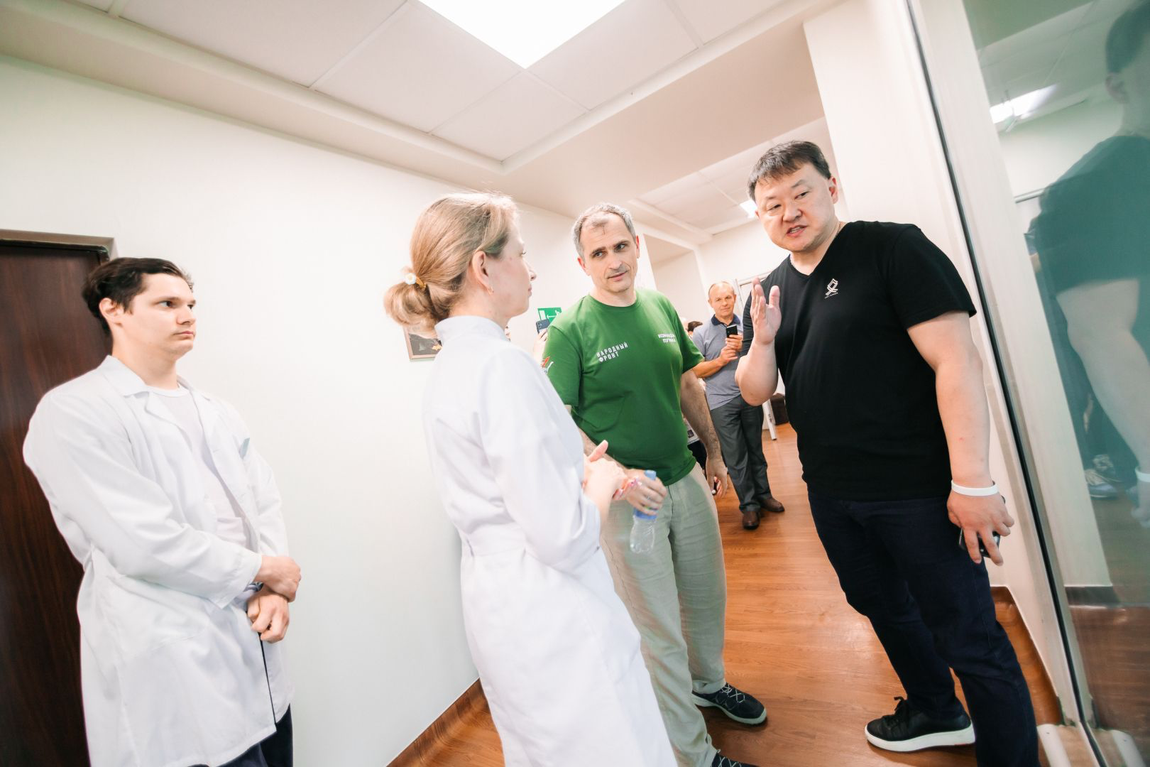 Перед началом встречи медицинские работники университета во главе с главным врачом Олегом Паком провели для Юрия Подоляки подробную экскурсию по Медицинскому комплексу ДВФУ. Ему показали мощности Медкомплекса, где бойцы СВО проходят лечение и реабилитацию: тренажерные залы, интерактивный кабинет с биологически обратной связью и VR-технологиями, зону когнитивной реабилитации, роботизированной механотерапии , клинико-диагностические, лабораторный и операционный блоки, центр реанимации и интенсивной терапии, палаты для пациентов, а также гостиничный комплекс, где бесплатно размещают бойцов СВО вместе с членами их семей.