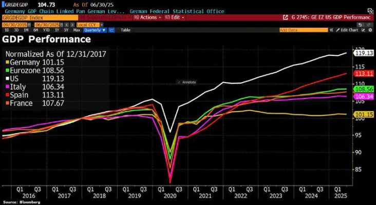 Вот она цена глупости. А именно, сознательного самоубийственного и по указке своих главных экономических противников (США и Великобритании) разрыва экономических связей со страной (Россией), которая делала немецкую экономику конкурентоспособной.
