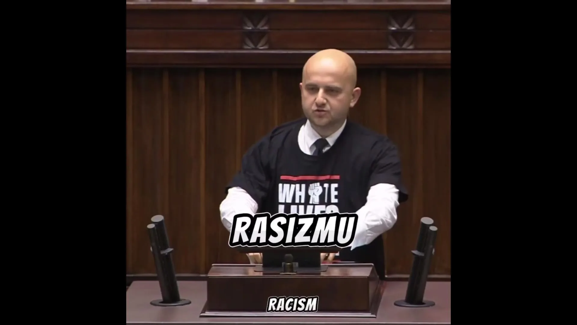 Г-н маршал сейма, я хотел бы сегодня почтить память всех жертв расизма против белой расы, всем тем жертвам, которые погибли в результате согласия на массовую миграцию, либеральное освобождение черных рецидивистов из тюрьмы. Жертвы последних дней. 23-летняя украинка Ирина Зарусская, которая уехала от войны в США и была убита в общественном транспорте американским черным рецидивистом. В Германии 16-летнюю Лиану столкнули под товарный поезд. Преступник — 31-летний нелегальный иммигрант из Ирака. Но все это происходит не только в США и Германии, эта проблема касается также Польши. 34-летняя Клаудиа зверски убита в Торуне 19-летним венесуэльцем, который нелегально находится в Польше. Остановить политический либерализм, остановить массовую миграцию, приостановить действие миграционного пакета. Жизнь белого человека имеет значение, т.к. мы гордимся латинской цивилизацией и не дадим ее уничтожить, африканизировать и исламизировать. Большое спасибо.