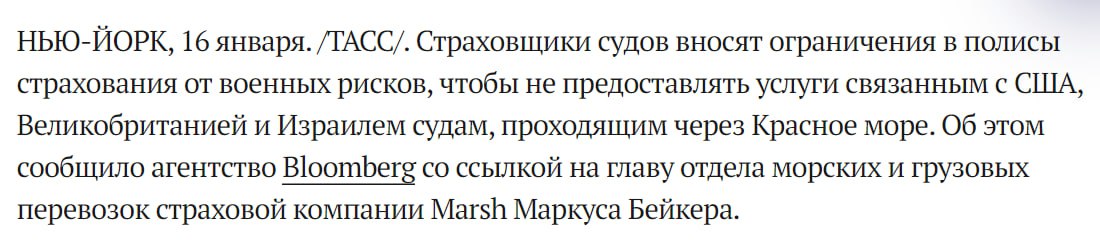 Какая потрясающая новость. Для тех, кто не понял. Одной из самых «страшных санкций», которыми Запад «обложил» наше судоходство, было именно «отлучение» от их страховщиков.