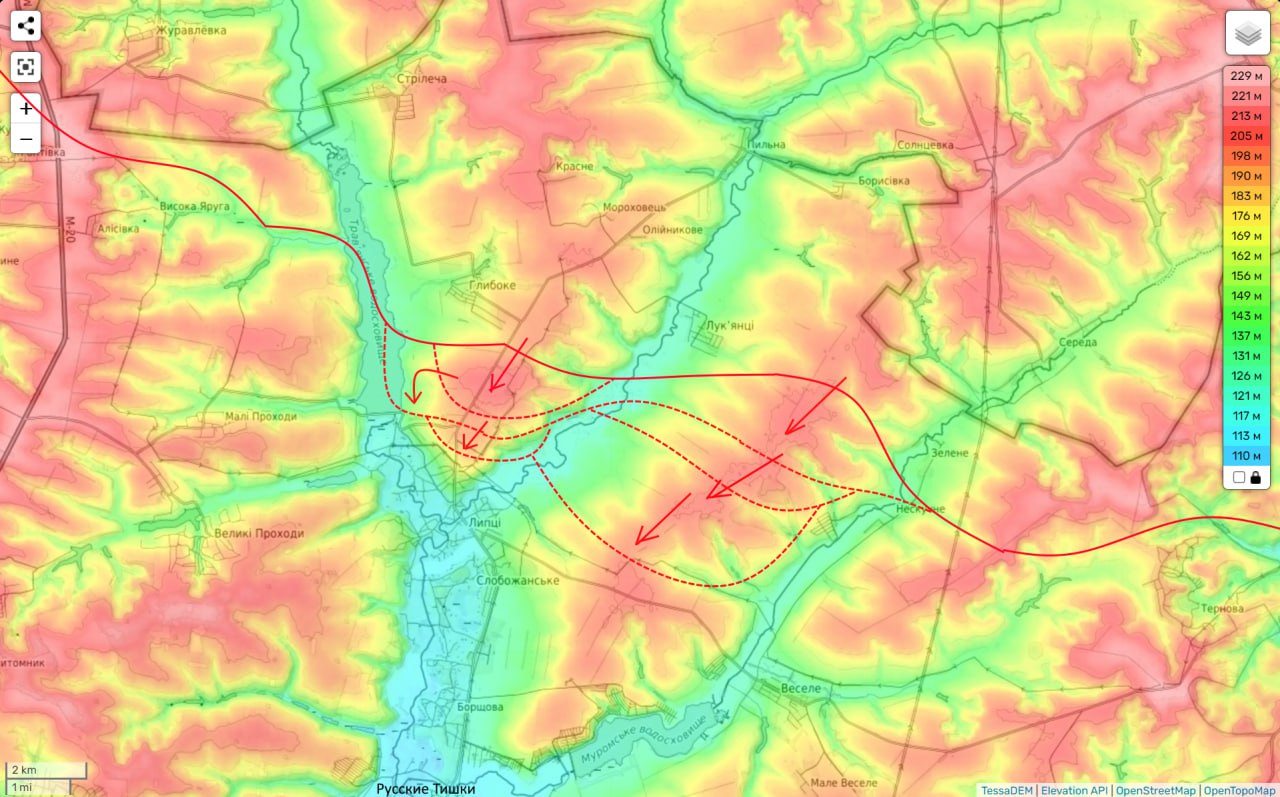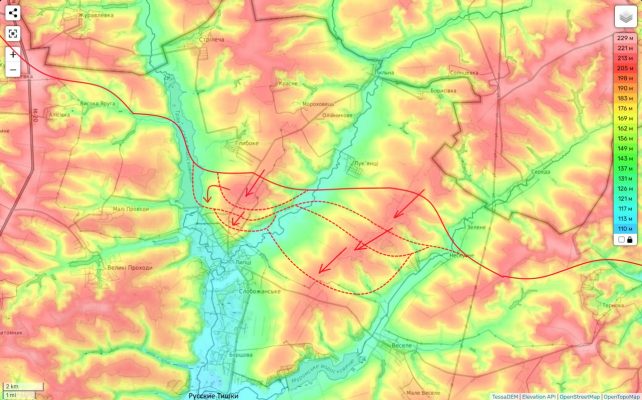 Продолжаются очень упорные бои в районе н.п. Липцы и Слобожанское. Сегодня основные бои шли за высоты восточнее этих сел, потому, что не взяв их, получить контроль над этим районом невозможно.