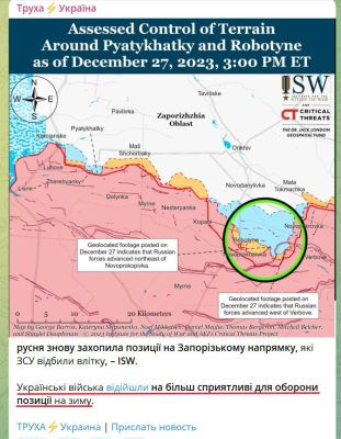 «Украинские войска отошли на более благоприятные для обороны зимой позиции» (написано в сегодняшних украинских новостях).