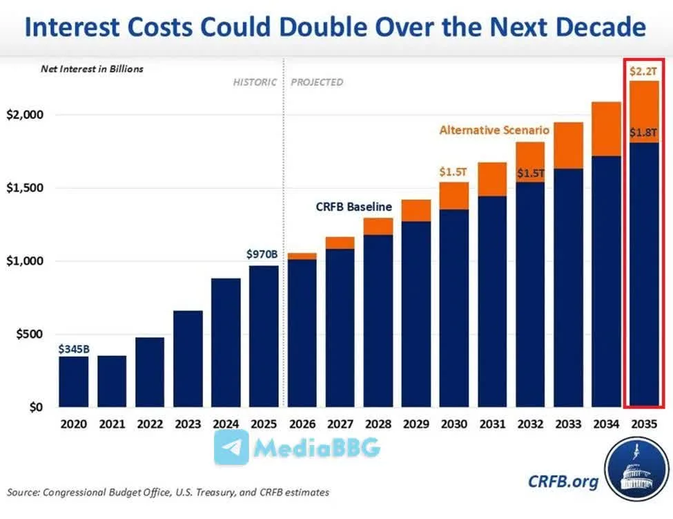 Напомню, что по итогам первых месяцев 2026 «финансового года» (в США он начинается 1 октября 2025 года) эта цифра уже перевалила за 1 трлн.$.