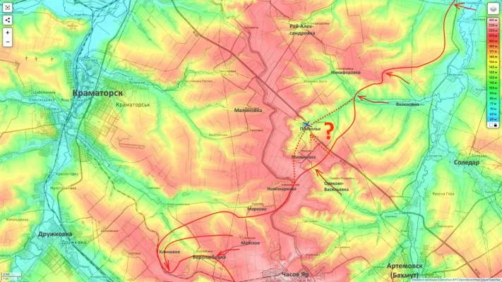 Кстати, занятие района Малиновки (чуть северо-западнее Привольного) позволит нам занять господствующие водораздельные высоты и начать полномасштабное воздушное наступление на логистику Краматорской группировки противника.
