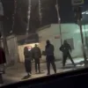 На котором коммунальщики после жестокого разгона студенческой манифестации (против геноцида в Палестине) смывают с мостовой следы крови протестующих.