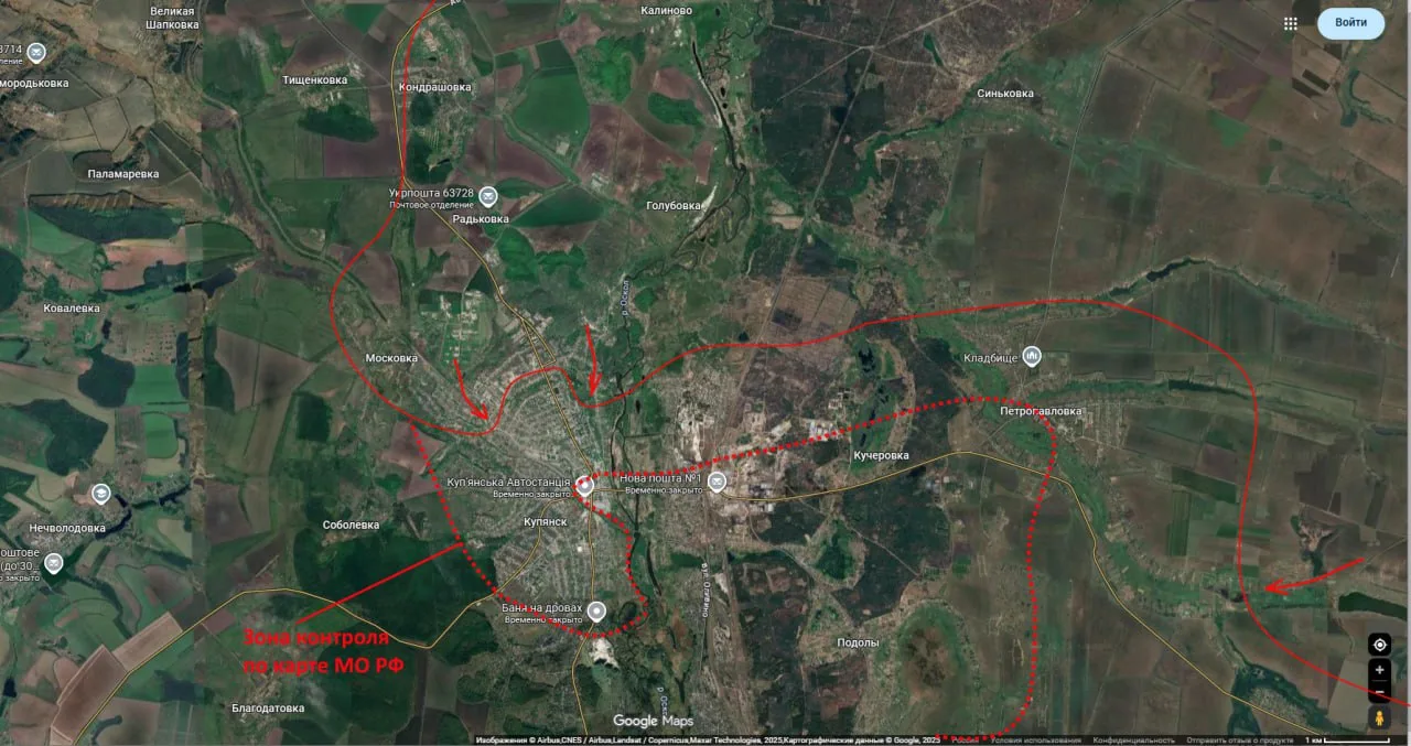 То есть, мы якобы контролируем всю правобережную часть Купянска и северную часть левобережья.