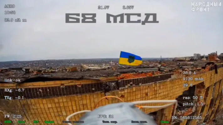 На первом видео вы видите спецоперацию ВСУ по «вооружению» своего флага на здании городской администрации Купянска. Сразу со стойкой его транспортируют и красиво спускают дроном на крышу. На втором бойцы 68 мсд убирают это «шуллерство противника» с крыши.