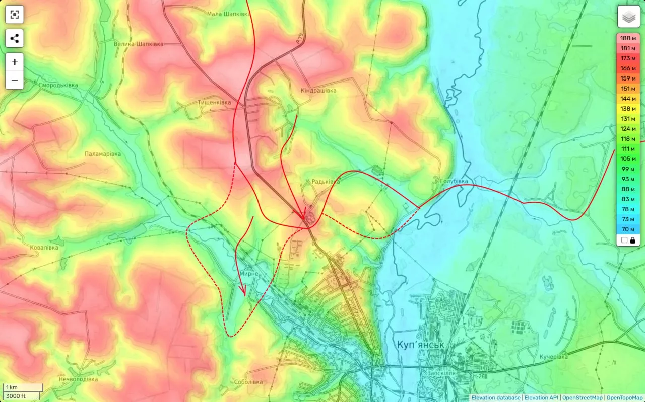 Наши части продолжают охват Купянска с севера. Накануне мы заняли важный холм между Радьковкой и Голубовкой.