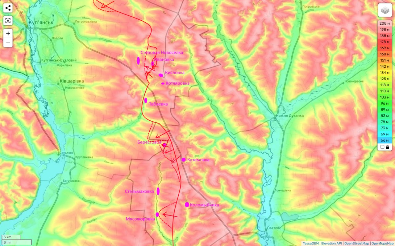 Приходят сообщения, что н.п. Ивановка полностью освобожден. Таким образом мы продолжаем успешно проламывать ослабевшие (после переброски резервов под Харьков) на данном участке силы противника и продолжаем двигать вперед по водораздельному холму.