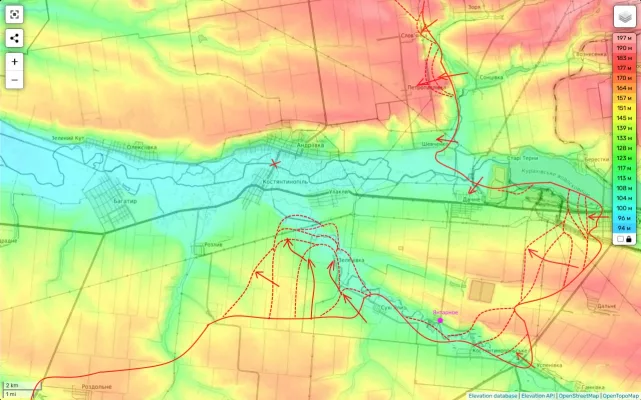 С нашей стороны идет перегруппировка и подготовка к новым атакам. Противник также, пользуясь передышкой, пытается укрепить свои позиции в районе н.п. Раздольное, Разлив, Богатырь, Константинополь, Улаклы.