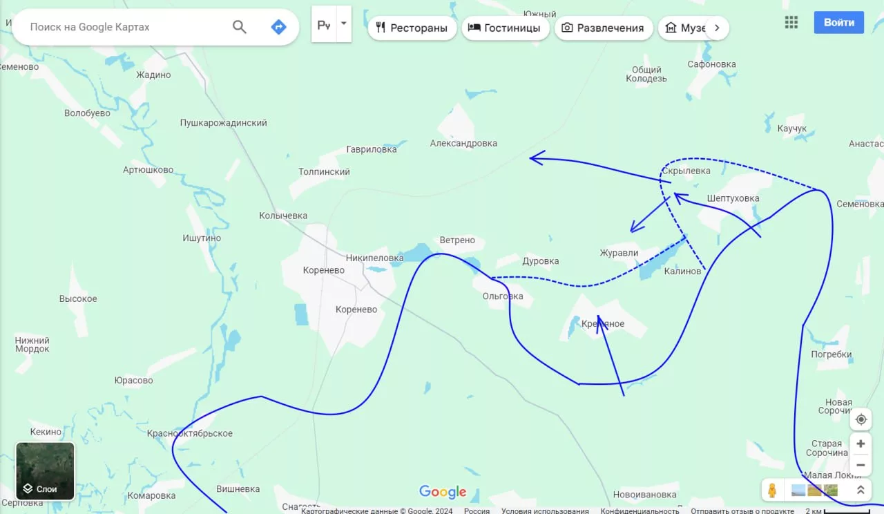 Не знаю, был ли в планах «празднования 33 годовщины провозглашения незалэжности (надеюсь последний) заход и оккупация Коренево, мы вряд ли теперь узнаем, так как большая штурмовая группа, сосредоточенная противником между Ольговкой и Кремяной поздно вечером была накрыта нашими ФАБми и по итогу полностью утратила интерес к дальнейшим «праздничным» мероприятиям на Кореневском участке фронта.