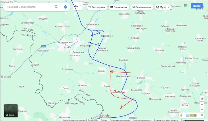При этом вчера, явно в едином замысле со своими атаками на Глушковском, Кореневском и Льговском направлениях, противник попытался обойти Мартыновку с юга и юго-востока.