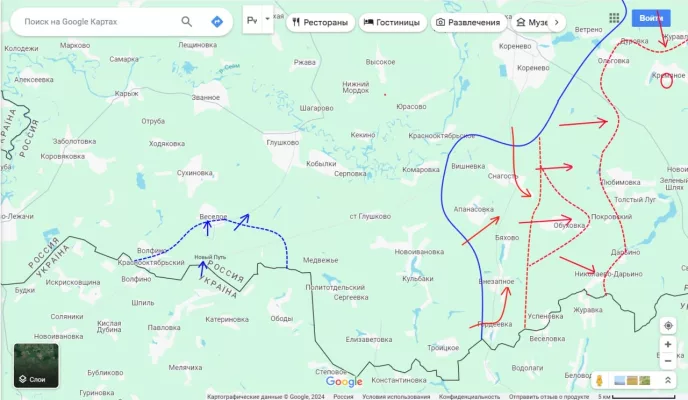 На юге, южнее Суджи наши части упорно и пока безрезудьтатно пытаются взять Черкасскую Конопельку и продолжают наступать в районе Плёхово.