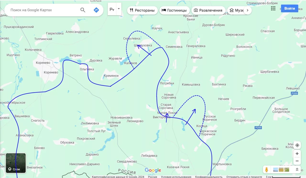 А прямо сейчас идет бой южнее н.п. Каучук, где наши крошат каких-то любителей «групповых ночных прогулок» по лесам Курщины.
