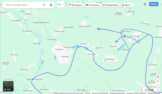 Здесь, увы ситуация ухудшается. Противник, не сумев прорвать наши позиции в районе Ольговки и Кремяной, направил часть сил в обод этих сел через Шептуховку на Журавли (в помощь тем, кто атакует на Александровку).