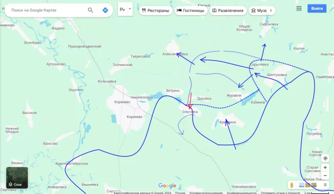 Глушково-Коренево. В первую очередь южнее Коренево, где он пытается выйти к ЖД станции Глушково. Цель понятна, но … она пока для противника недостижима.