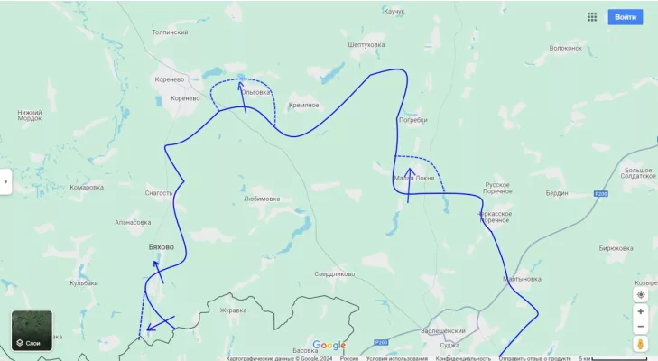 Здесь без особых изменений. Очевидно, что противник перегруппирует свои силы для наступления на других участках Курского направления. Это дает нам возможность зачищать леса между Каучуком и Погребками от мобильных групп противника. Которые там обосновались.