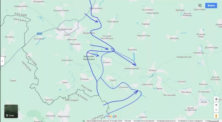 Суджа, к сожалению, все плотнее занимается противником и становится их важным опорным пунктом. Далее на юго-восток противник вклинился по полям и вдоль жд полотна севернее и южнее реки Псёл. Пытается здесь закрепляться. Наши части, понимая, что потом его оттуда выбить будет труднее, стараются его оттуда побыстрее выбить.