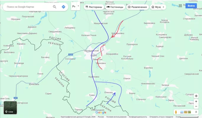 Вчера южнее Суджи было отмечено перемещение моторизованных подразделений противника. Причем, это были не колесные «Казаки» или «Хамвэи» ССО, а тяжелые БМП М2 «Брэдли» в количестве более 10 единиц. Сегодня противник нанес здесь удар, и занял н.п. Плёхово.