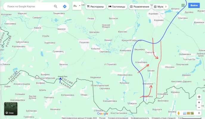 Для этого им сегодня с утра были привлечены части из Сумской области, которые с утра атакуют в районе н.п. Новый Путь по направлению к Глушково.