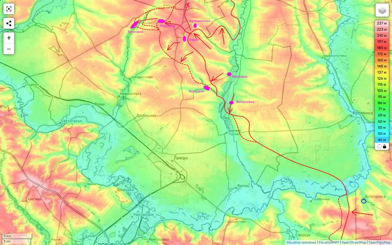 Таким образом расчленение плацдарма ВСУ восточнее реки Оскол на этом участке фронта на Боровской и Лиманской продолжается.