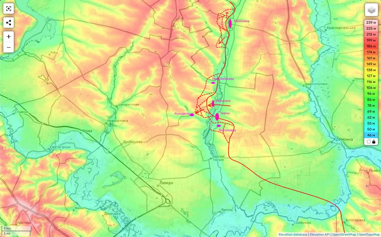 На Лиманском направлении продолжаются попытки нашего командования соединить два плацдарма на западном берегу реки Желебец в районе Макеевки и Ивановки.