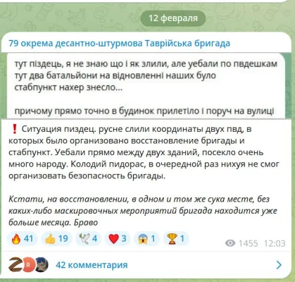 Справка. 79-я бригада ВСУ, как по мне одна из лучших. Много она нам крови выпила. И ее сильно потрепало в боях за Мирноград, где командование слило целый батальон (вначале в контратаках, а потом не давая его остаткам выскользнуть из котла).