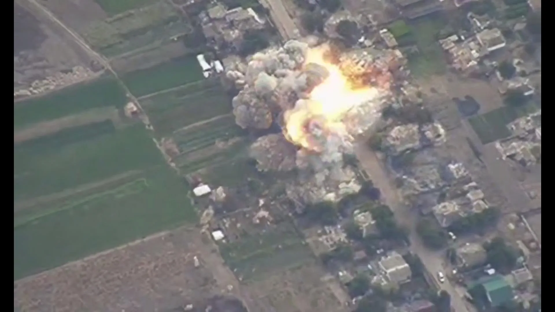 Что примечательно, все четыре КАБа уложены в радиус 20 метров. А два так вообще в одну воронку. Завидная кучность сброса серии.