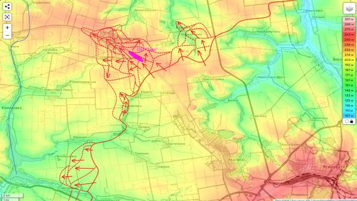 Сегодня, как и предполагалось утром, части ВС РФ заняли обойденные накануне и брошенные позиции ВСУ в Бердычах и сумели атакой сбить его со следующей линии обороны в районе Семеновки.