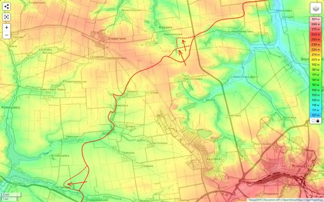 И, повторюсь, это стало очевидным в последние двое суток, когда наши части, вначале вчера (после отработки позиций противника бомбами и артиллерией) рывком взяли район ферм на южной окраине Новокалиново. А сегодня, также после предварительной обработки ВКС и артиллеристов, продолжая наступление, заняли часть высот восточнее этого села.