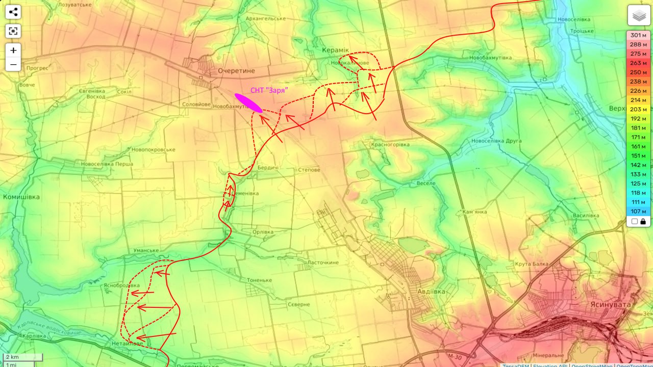 Полное занятие этого СНТ выведет нас к окраинам Очеретино — стратегически важного н.п., падение которого может обрушить фронт врага на данном участке и потребует создание новой линии обороны далее на северо-западе.