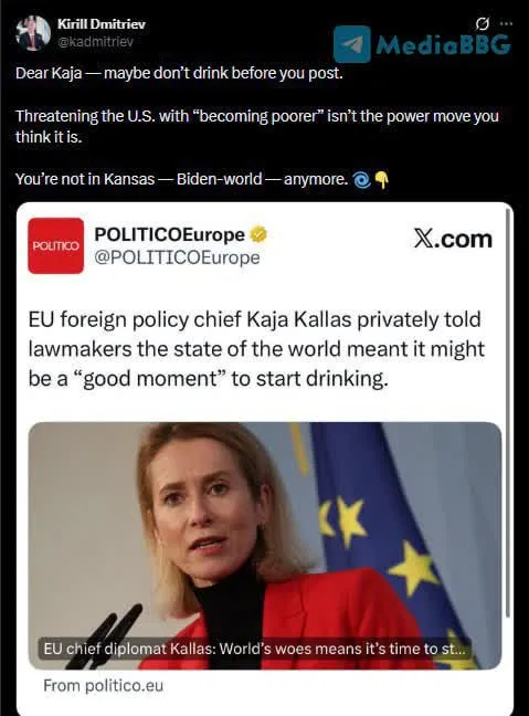 Ранее Кая Каллас говорила, что ей хочется от происходящего в начале 2026 года напиться. Но похоже, действительно пьет она не после, а перед публикациями. И, надо признать, есть от чего.