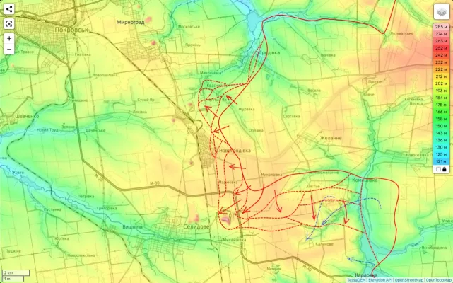 Юго-восточнее мы продолжаем штурмовать н.п. Калиново, потеря которого поставит гарнизон Карловки с состояние оперативного окружения и скорее всего заставит бросить свои позиции без боя.