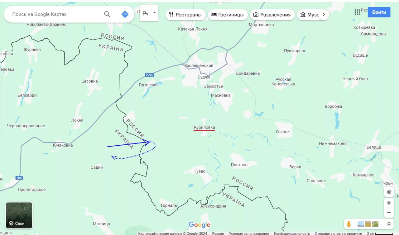 Сегодня утром до взвода противника при поддержке двух танков и батареи ствольной артиллерии, попытался прощупать наши позиции по направлению к н.п. Куриловка (южнее г. Суджа).