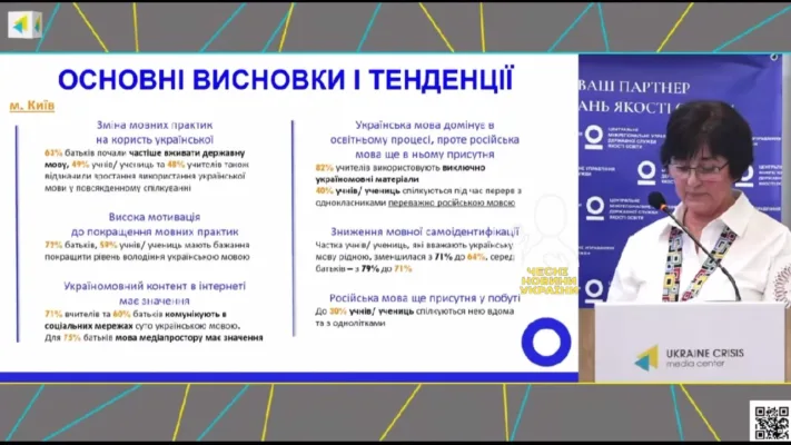 Упоротая галичанка (руководитель Центрального межрегионального управления Госслужбы качества образования Украины) Света Бабинец с возмущением зачитывает цифры деукранизации Украины.