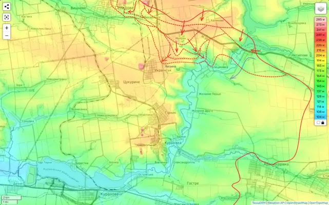 Именно поэтому было так важно зайти ей в тыл, что мы и сделали. И теперь, эта особенность рельефа играет против противника. По мере занимания нами высокого берега реки на севере, они просто вынуждены бросать свои позиции на южном её берегу.