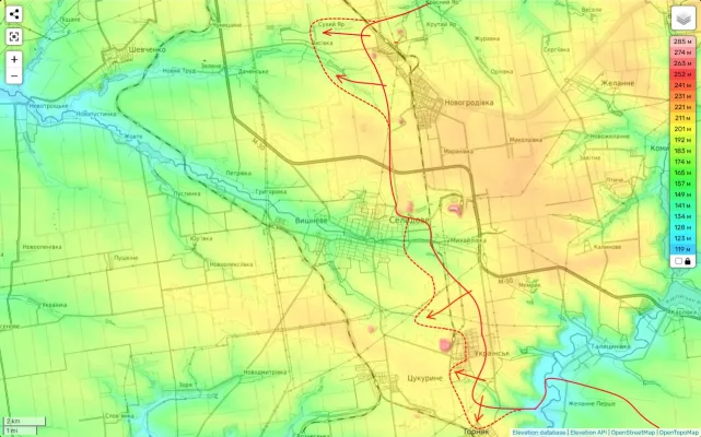Для того, чтобы понимать происходящее на данном участке фронта, я специально нарисовал новый вариант из двух своих карт, где Селидово является не флангом (как ранее), а центром (как это и есть на сейчас после временного отказа наступления на Покровск и Мирноград) нашей наступательной операции.