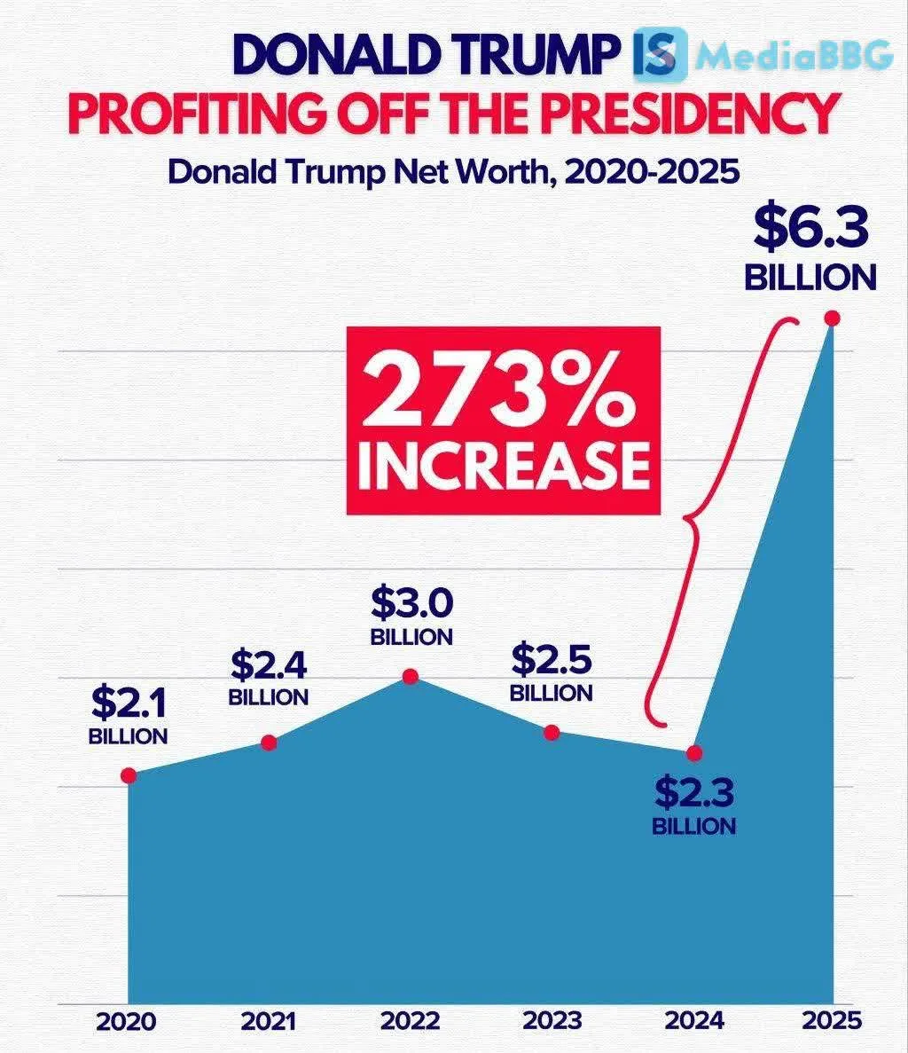Было 2,3 млрд.$, стало 6,3 млрд.$ То есть, находясь на посту президента он «заработал» за неполный год около 4 млрд.$