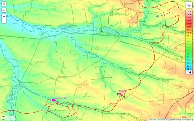 Вчера наши части продолжали бои на Угледарском участке. Атаки и демонстрации шли на разных участках, но успеха добиться удалось только в районе н.п. Золотая Нива, где мы смогли зайти в село и в нем закрепиться.
